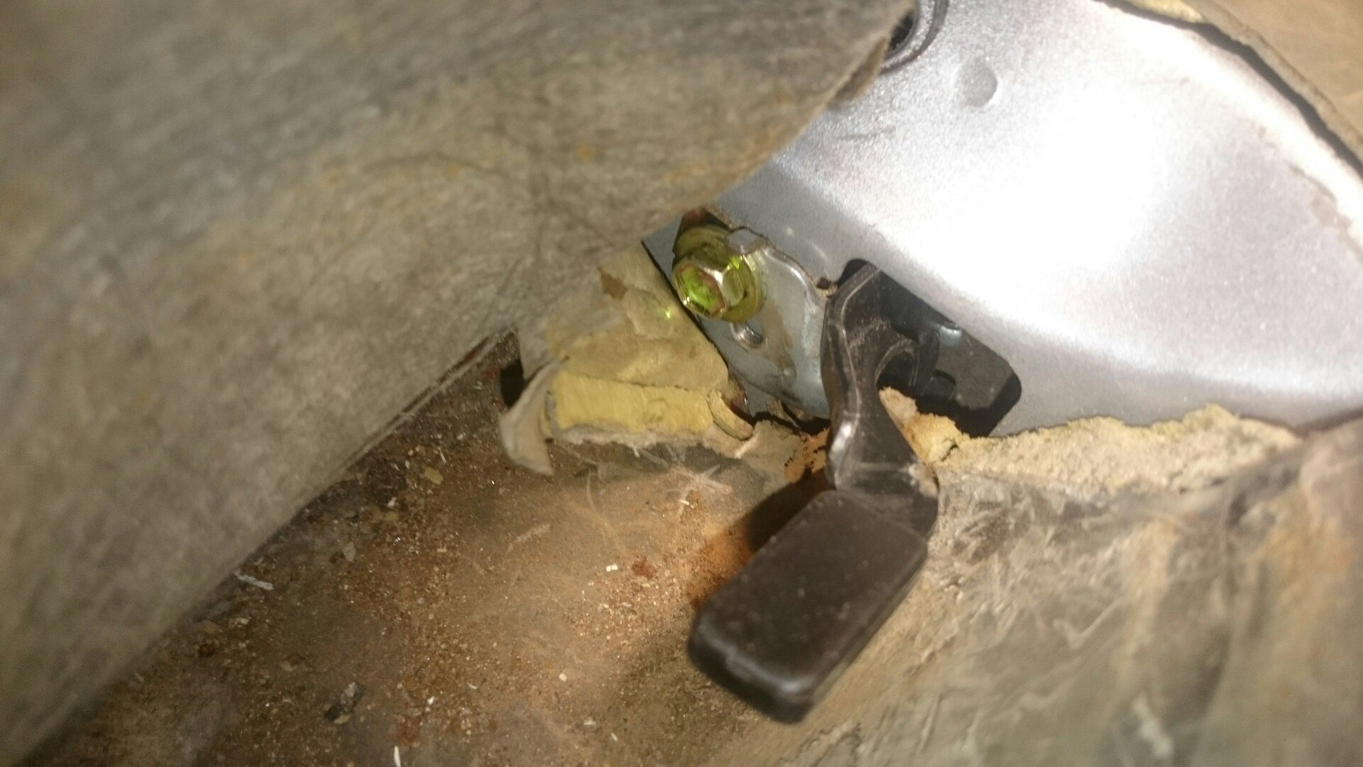 Просверлил примерно на "11 часов" дополнительное отверстие в кронштейне от рафика на 8мм и родной болт закрутил на место (купите сверло заранее и будет очень быстро). Тросик сел без танцев с бубном как положено.