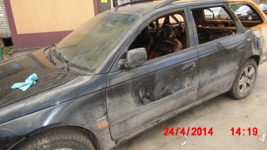 Комментарий к файлу: Изнутри обшивка на задней двери расплавилась, на передней не сильно оплавилась. Железо не пострадало