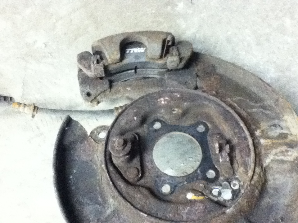 на авенсисах два типа задних дисковых тормозов в одном случае колодки ручника внутри диска , в другом тросс ручника прям на суппорт крепится