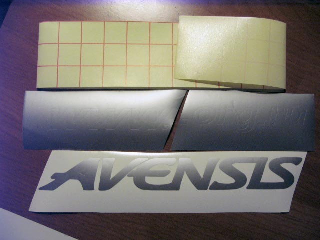 Сейчас в наличии, готовые к отправке в любой город России, лежат 10 наклеек http://www.AVENSIS.org.ru серебристого цвета, длиной 460мм. Стоимость с доставкой 60 рублей за штуку, если больше одной берете, то - 55р. за штуку.