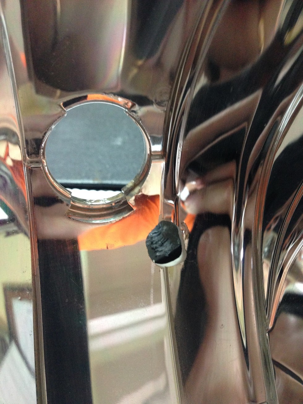 с обратной стороны тоже резиновое колечко,стальную шайбу и затягиваем гайку.провода которые выходят через отражатель обильно залил герметиком-момент.