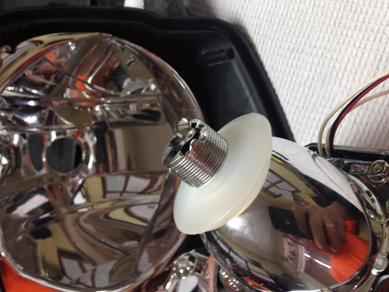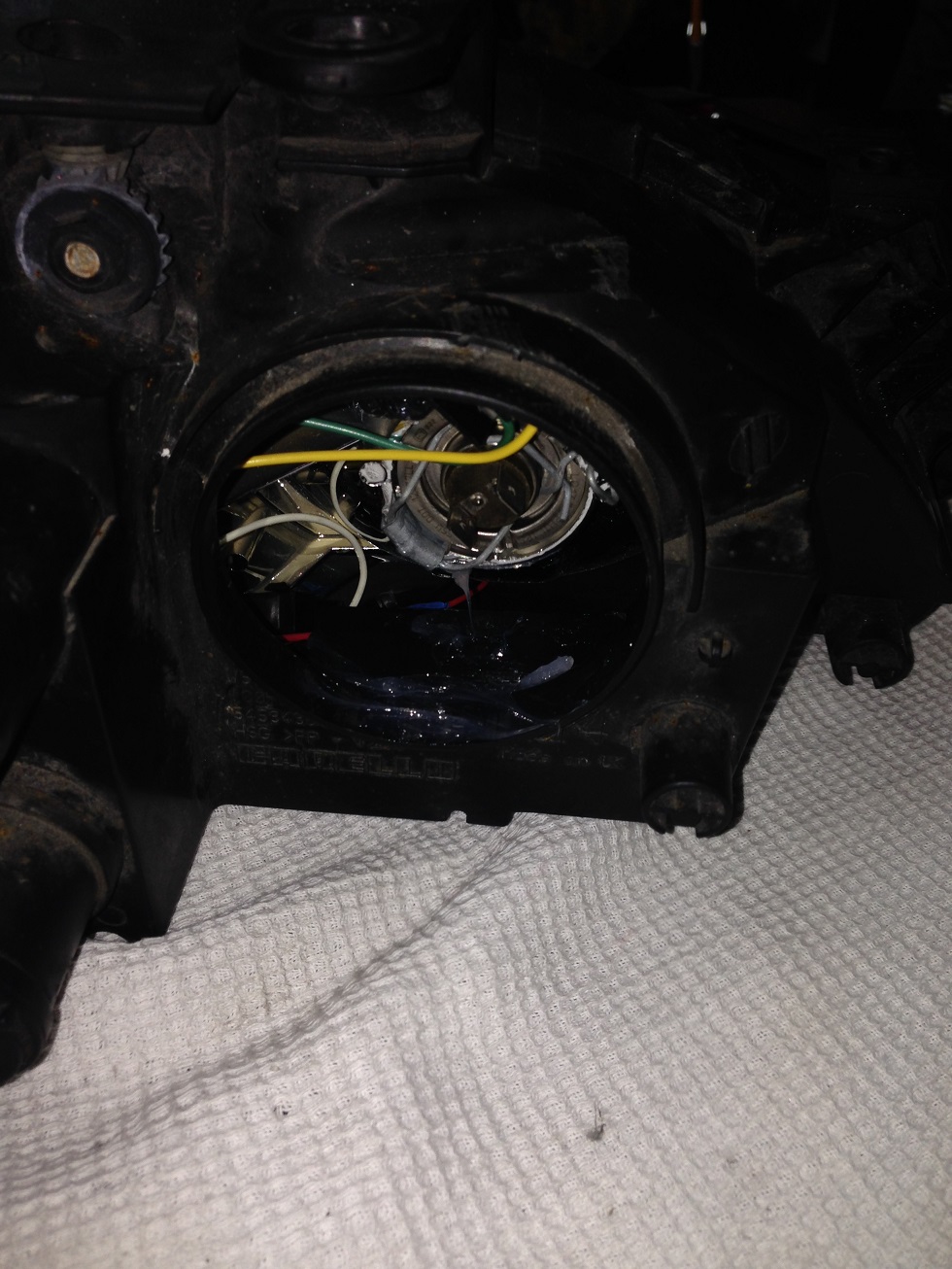 удалил два железных крепления стандартной лампы и просверлил отверстие в отражателе чтобы прпустить провода ангельского глаза,и шторки дальнего.