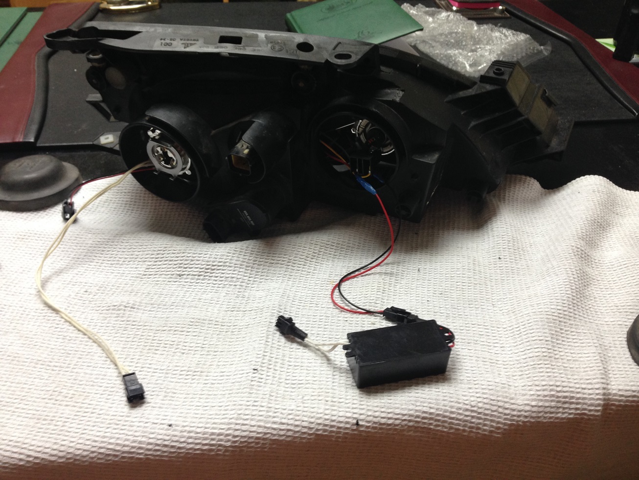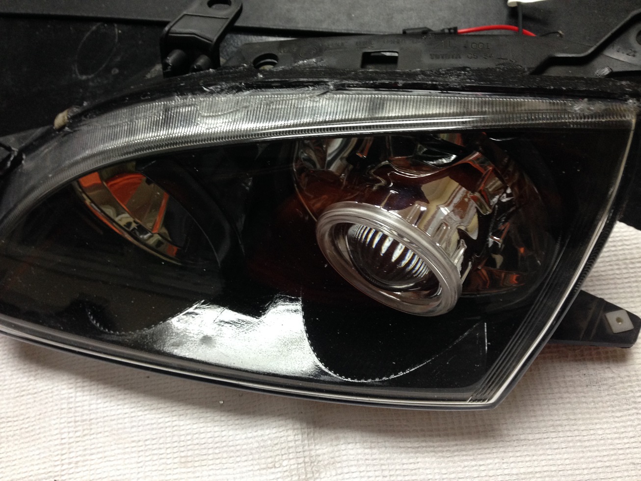 удалил два железных крепления стандартной лампы и просверлил отверстие в отражателе чтобы прпустить провода ангельского глаза,и шторки дальнего.
