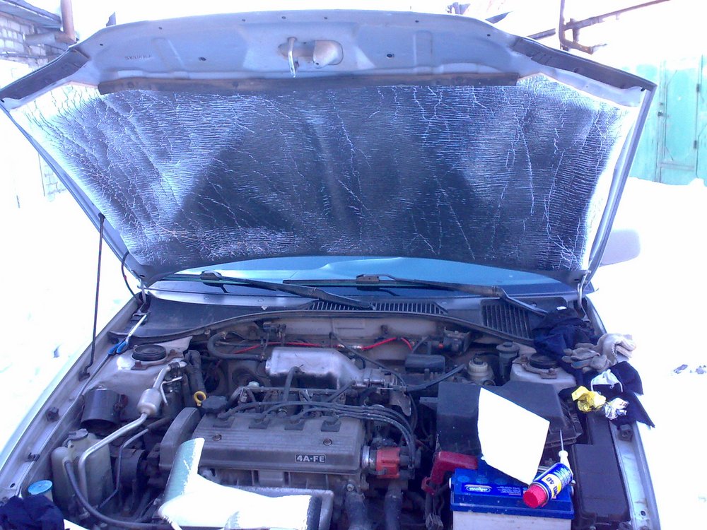 Всем привет! Вот, решил поделиться опытом самостоятельной термошумоизоляции моторного отсека. В принципе, ничего супер сверхъестественного. Моя инициатива исходила из того, что машинку я брал очевидно бывавшую в лобовой атаке...несильной конечно, но крыло и капот стоят новые :-))) Очень жаль, но предыдущий владелец не заморочился под капотом присандалить теплоизоляцию...если я правильно называю эту шерстяную штуковину :-) Почему...-загадка.. двигатель же не горел :-))) Учитывая, что машинка бегает в районе крайнего севера, становится очевидной необходимость прогреваться быстрее и остывать дольше. Плюс ко всему меня постоянно душила жаба, что можно было бы и хотя бы частично шум, а то вспоминается пример жестяного листа, который издает много шума, когда его раскачиваешь в воздухе, + шум от работающего двигателя. Посмотрел на Exist стоимость той самой шерстяной детали с неоднозначным названием «УПЛОТНИТЕЛЬ КАПОТА» ( Код 53341-05020) и прибалдел…наверное, сам Дж.Армани вручную их шьет :-) в общем не в эту машину…Итак, решено…начитавшись статеек по сути, поехал, взял термопласта лист (тепло и шумоизоляция), но не помню, какого производителя, но произведен в РФ. Так что первым делом, навел марафет, обезжирил, заложил аппликацией из термопласта пазы капота, за красотой не следил, поскольку все это потом закрыл вторым общим листом. В итоге, держится гут, машина стала РЕАЛЬНО прогреваться быстрее! Может, весна пришла? :-) ( А так В -30 мало удовольствия ждать когда хотя бы стрелка термометра хоть чуть сдернется (дальше мы в принципе прогреваемся уже на ходу :-)… а «Вебасту» пока не готов :-)) Так вот относительно ШУМОизоляции скажу, что эффект достигнут на мой музыкальный слух процентов на 5% на оборотах 2,8-4,5тыс 7-10%…ежели делать, то сразу все… арки, «заторпедное» пространство (виброизолятором), крышу и двери…тогда будет эффект более красочный…но задачу я такую не ставил, так что и эти 10% мне вполне достаточны :-) PS При таких действиях очень важно, чтобы изолятор не прикасался к «голове»! У меня по экспериментальным замерам с подкладыванием спичечных коробков 3 см от ВВ проводов. Так что я не беспокоюсь. Всем удачи!