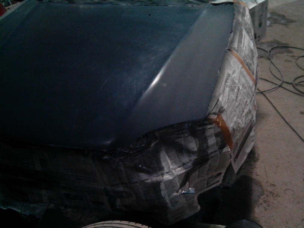 Под его руководством зашпаклевал и подготовил порог к покраске. И всё вроде бы двигалось быстро и хорошо, но давние терзания по поводу мутноватого и сколотого до состояния "зелёный гепард" капота