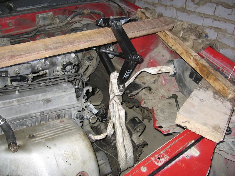 При помощи архимедовых рычагов двигатель подвешен в моторный отсек.
